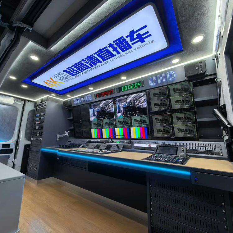 该转播车按照广电行业技术标准设计集成,车身外观及内部功能布局均根据用户业务需求定制,车内集成了 4K 超高清信号采集、处理、制作及传输等核心设备,可满足大型活动直播、赛事转播、新闻报道等多元化业务场景的技术要求。项目实施过程中,我司严格遵循相关规范,完成了系统集成、调试及人员培训等工作,确保车辆各项技术指标符合设计要求。