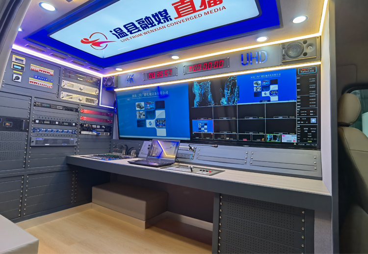 车内设备集广播电视于一体,可实现紧急情况下的现场扩声、应急广播;音视频信号的网络推流,实现现场网络直播。