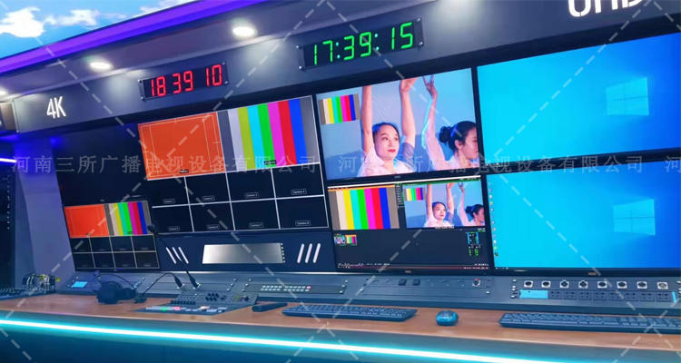 此辆新闻直通车前方驾驶区设有倒车监视系统、烟雾报警系统;中间为导播工作区,监视墙为1个42寸监视器6个27寸监视器组成,工作台面设有专业导播台、数字调音台等专业广播电视设备及周边;后方设有设备集成机柜,机柜中间为检修门;车辆尾部设有仓储区。