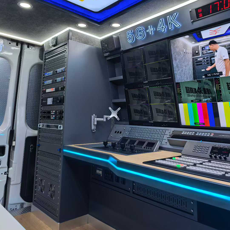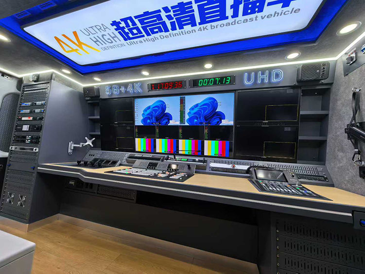 该转播车按照广电行业技术标准设计集成,车身外观及内部功能布局均根据用户业务需求定制,车内集成了 4K 超高清信号采集、处理、制作及传输等核心设备,可满足大型活动直播、赛事转播、新闻报道等多元化业务场景的技术要求。项目实施过程中,我司严格遵循相关规范,完成了系统集成、调试及人员培训等工作,确保车辆各项技术指标符合设计要求。